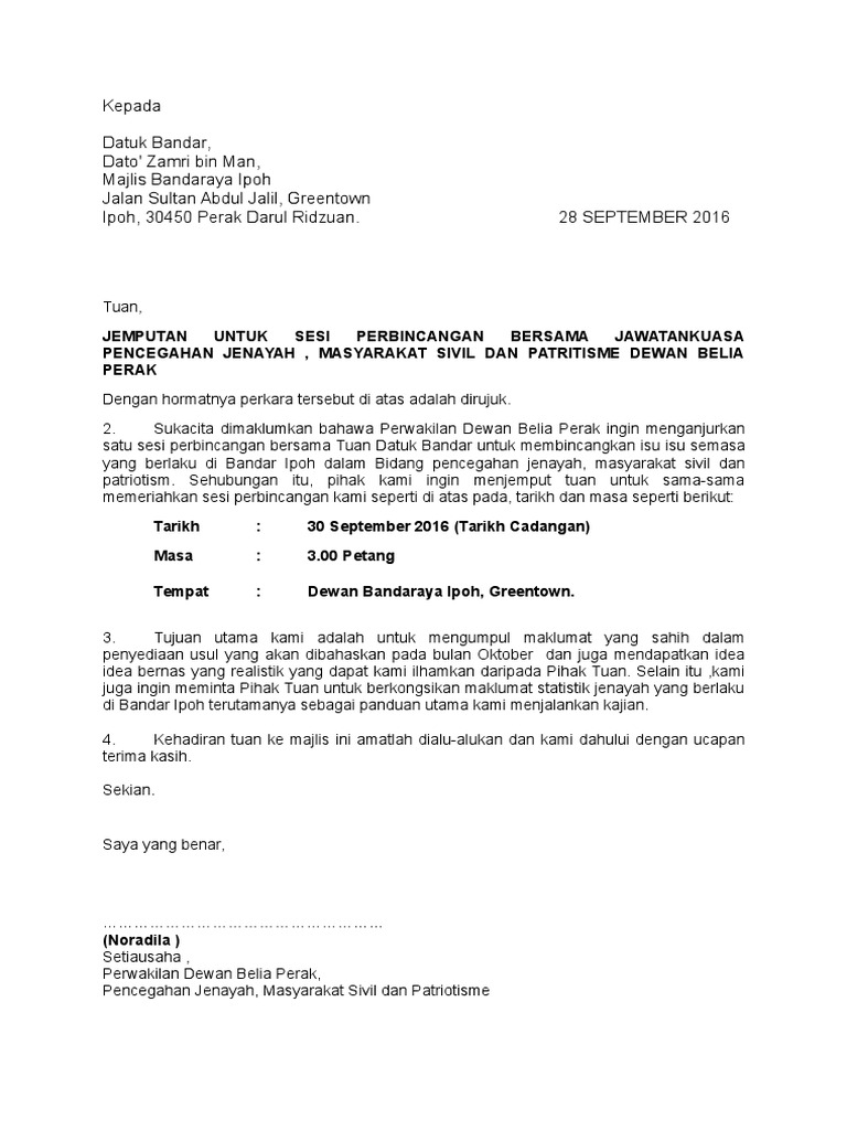Contoh Surat Rasmi Kepada Datuk Bandar Contoh Pustaka Otosection
